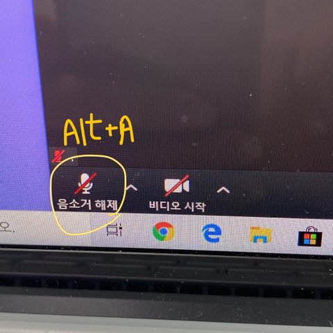 참고로 줌은 말하는 사람 화면(얼굴)이 모두가 볼수있게 커지는 아주 실용적인 어플이야 그래서 마이크랑 비디오가 다켜져있으면 기침하거나 물마실때? 옆에서 누가 말할때 니얼굴이 디빵크게 모두에게 보일꺼얔ㅋㅌㅋ 그니까 마이크는 발표나 이야기를 해야할때를 제외하고는 꼭 꺼둬!! 비디오는 아마 쌤들이 너네가 듣고있나를 확인하기위해 켜두라고할수도 있어! 아 마이크는 Alt+A를 누르면 쉽게 켰다껐다할수있엉