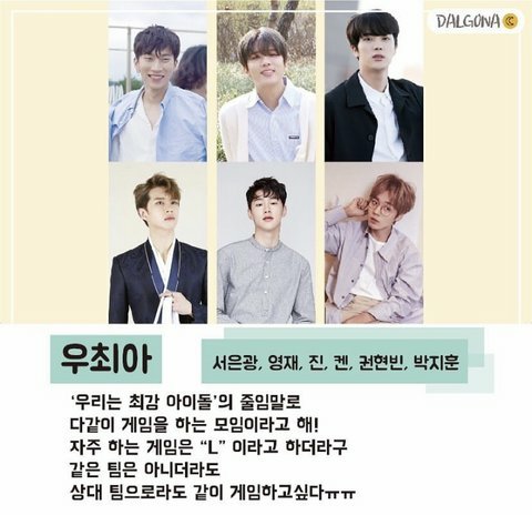 또 의외의 친목이 있으니 바로 은광이랑 석진이!! 우최아라는 모임인데 게임하는 모임이야!!!
