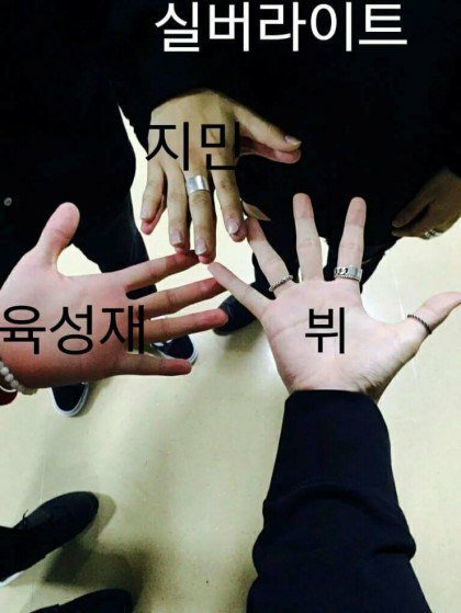 성재랑 뷔가 또 손이 엄청 크기로 유명하잖아!!이건 성재,뷔 손이구 지민이 은광이 손포갠거 쪼꼬미ㅠㅠㅠㅜㅜㅜㅜ