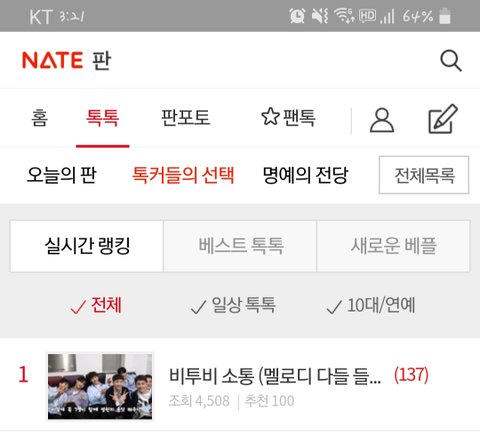 +) 톡선1위라닠ㅋㅋㅋㅋㅋ근데 걍 보자마자 캡쳐한건데 누가 멜로디 아니랄까봐 비투비시에 똭 캡쳐해버렸넹?