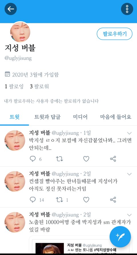 짹에서 지성버블 검색하다가 우연히봤는데 애들 버블 반응확인할때 일부러 보이게 하려고 이름까지 지성버블로 한 거 ㅈㄴ악질이다.. 우선 신고는 했는데 어떻게 할 방법 없을까?? 저거 너무 쉽게 서치할 수 있어서 너무 걱정된다..