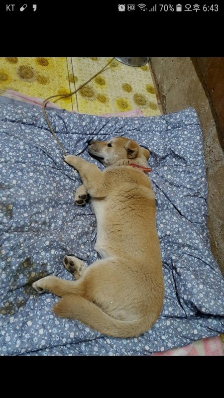 임보처가 없어 아이는 차가운 뜬장위에서 지내고 있습니다