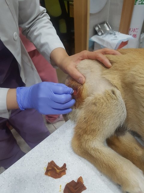 전혀 움직이지 못하는 아이를 병원으로 이동해 골절된 골반 다리 수술을 하고 보호소로 다시 돌아왔습니다