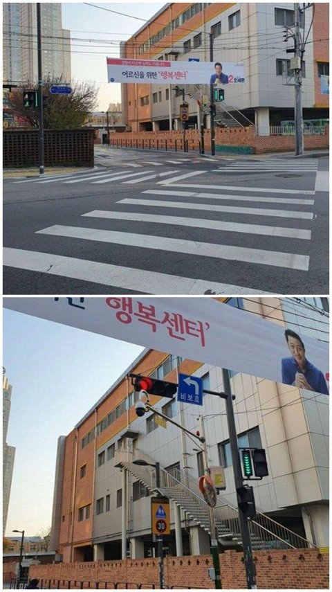 이거 선거법 위반은 아닌데 도로교통법 위반 아닌가요? 저렇게 가리면 사고 날 수도 있을 것 같은데 빨리 옮겨주세요. 부탁드려요. 보니깐 스쿨존 같은데... 사고나면 어떡해요.