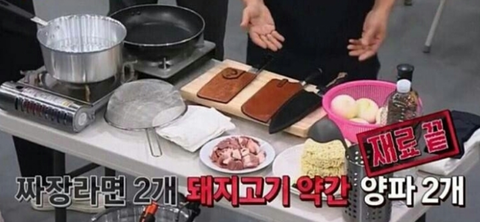재료는 짜장라면 2개와 돼지고기 약간, 그리고 양파 2개가 끝이라고 함