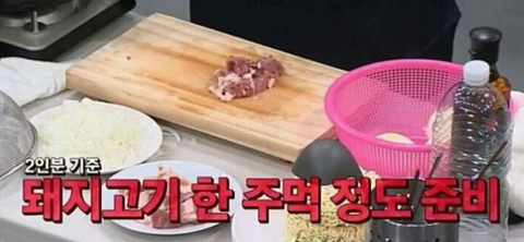 돼지고기는 2인분 기준으로 한 주먹 정도 준비하고, 잘 익도록 자잘한 크기로 썰면 됨