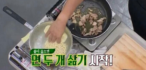 다른 한 쪽 가스에는 면 두 개 삶기 시작하고,