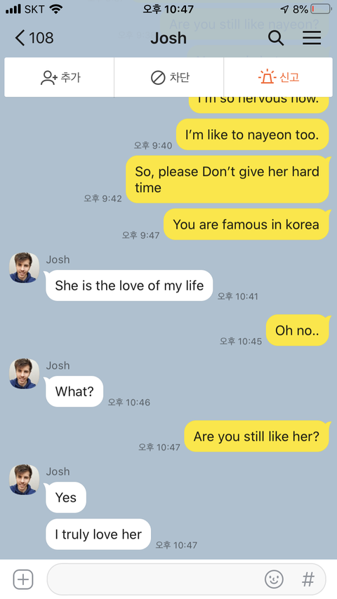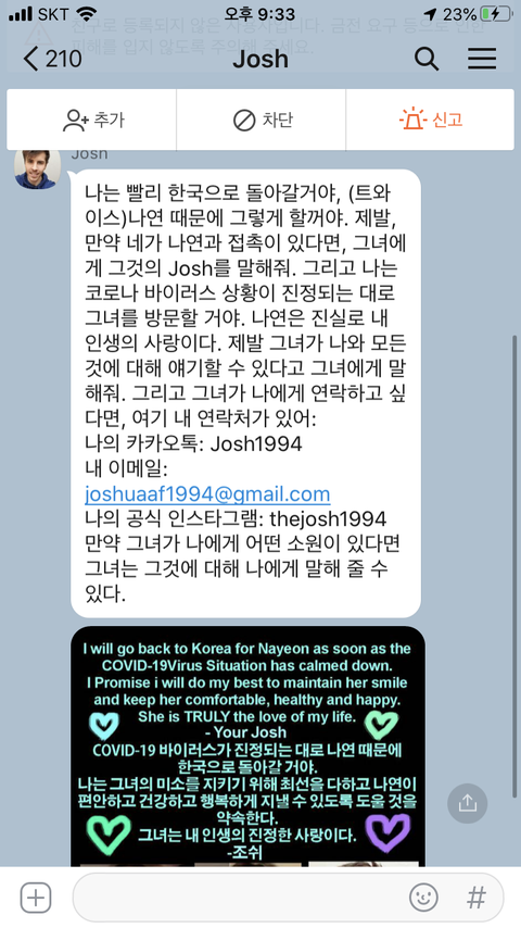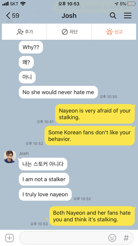 트와이스 나연 사생팬 조쉬와 카카오톡 연락을 했는데..