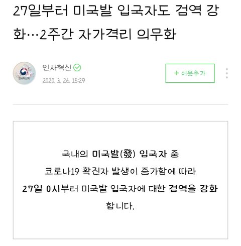 2. 자가격리 의무화는 3월 27일 0시부터 였음