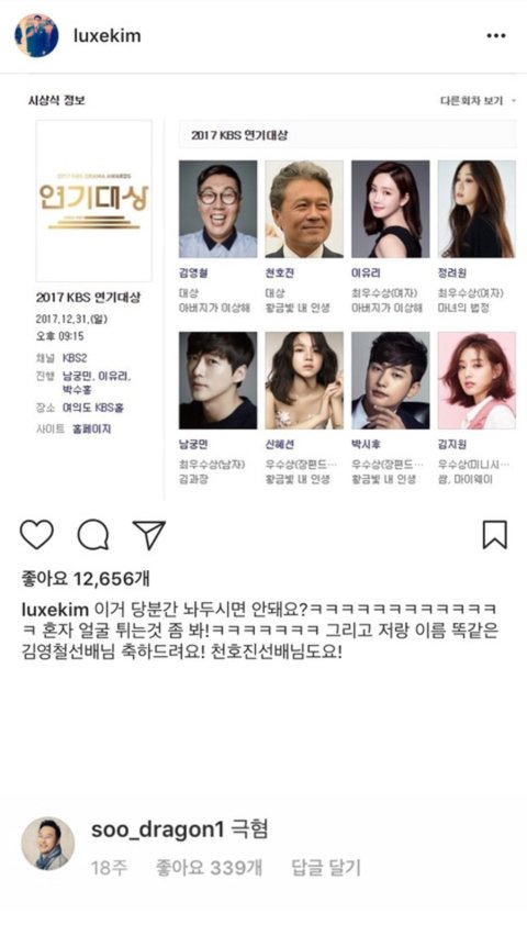 사진 올린후 김영ㅊ본인, 김수ㅇ댓글이래ㅋㅋㅋㅋ