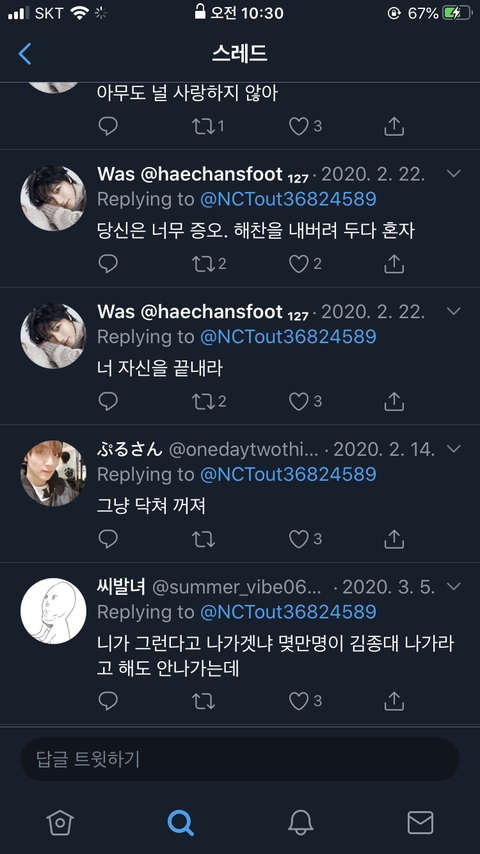 짹에서 해찬이 욕하는사람 댓글