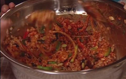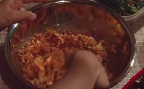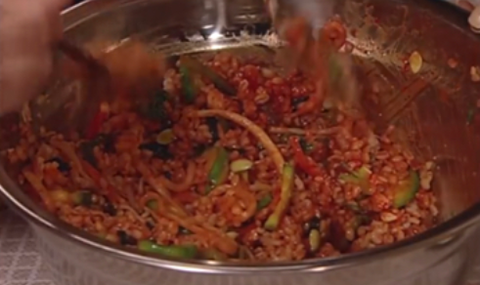 누군가 양푼에 밥을 비비고 있음