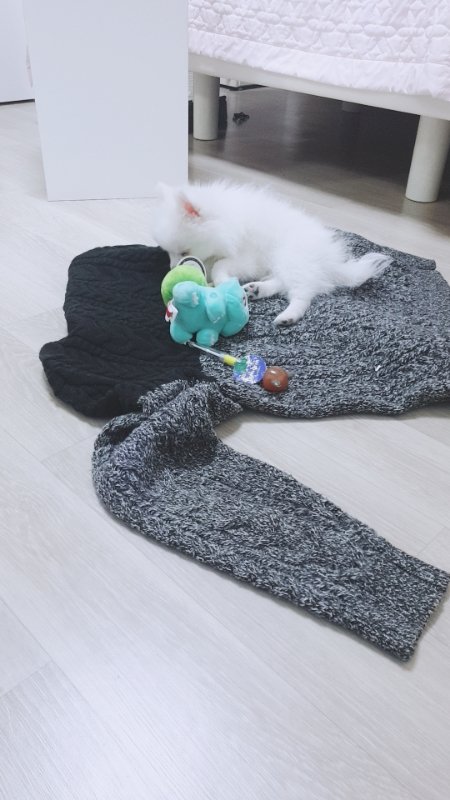 바닥에떨어져있는 온갖것들 다 물고 놀길래