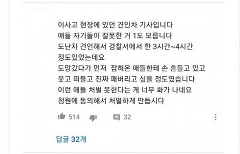 나머지 7명은 처벌이 거의 없거나 없음 그냥 운전한 애만 7억 내는거임 하 양심 없는 7명 부모들은 당연히 돈 분배 해서 안 낼테고 결국 걔네 부모 혼자 7억 갚아야한다는거ㅇㅇ