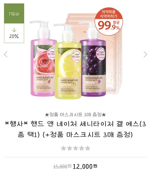 5. 핸드 앤 네이처 세니타이저 겔 에스 12,000원