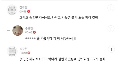 ㅋㅋㅋ 이렇게 유빈이가 콜라 호록하다 국헌이한테 들킨 이야기 해주면서 또 투닥투닥하는 모습도 보여줘서 팬들 빵터지게 하고