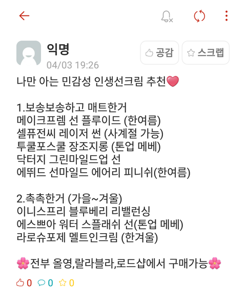 인생 선크림 추천