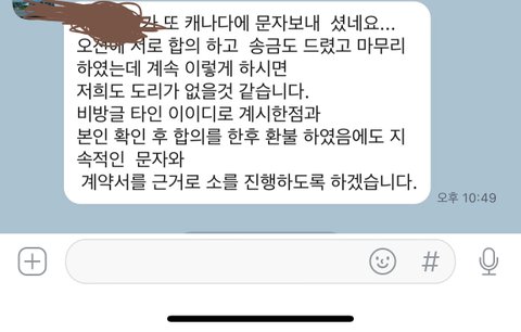 끝으로 저는 어떻게든 돈 꼭 받아낼거고요. 후에 상황좋아지는대로 캐나다입국도 할예정. 피해자 단체모임을 결성해볼생각입니다. 우리 같이 힘을 모아서 갑질하는 업체한방먹여봅시다.