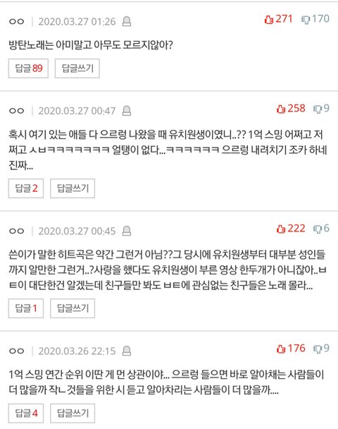 어이없게 방탄 후려치는 글들이 많아서 머글이나 타팬들이 진짜 그런 줄 알게 될까봐 쓴 거
