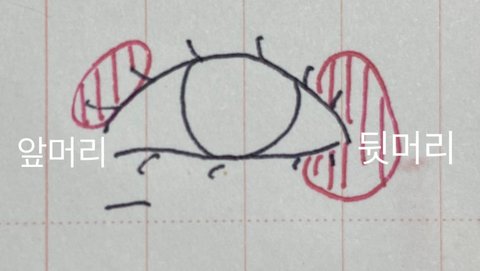 나는 무쌍이어서 눈 두덩이에 살이 많아. 베이스를 하나 깔면 눈이 부어보이더라구. 그래서 노베이스로 앞머리랑 뒷머리에만 발라줬거든? 유쌍은 베이스 한겹 깔고 해도 되구! 그건 자기맘