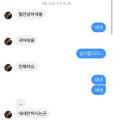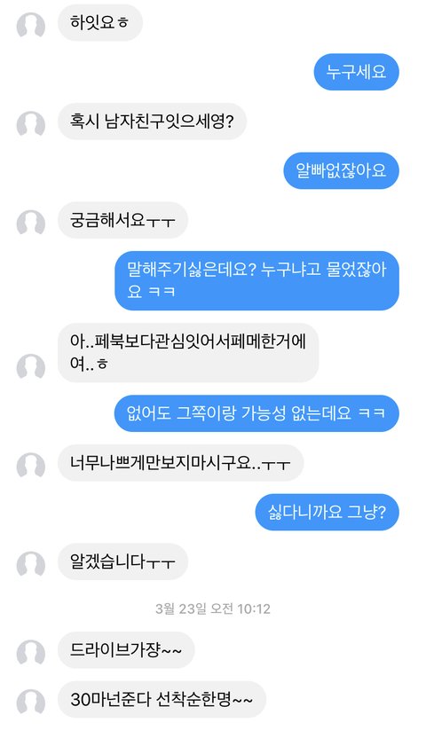 그냥 쓰니가 예뻐서 페메 건 것 같다고 생각했는데 ㅋㅋㅋㅋ 보낸 새끼보고 지인능욕 90%정도 확신함... 어디사는 00고 __ 김00 길가다 만나면 먹어도 좋대요~ 이런데 올라온듯ㅠㅠ