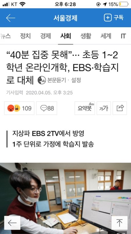 “40분 집중 못해”··· 초등 1~2학년 온라인개학, EBS·학습지로 대체