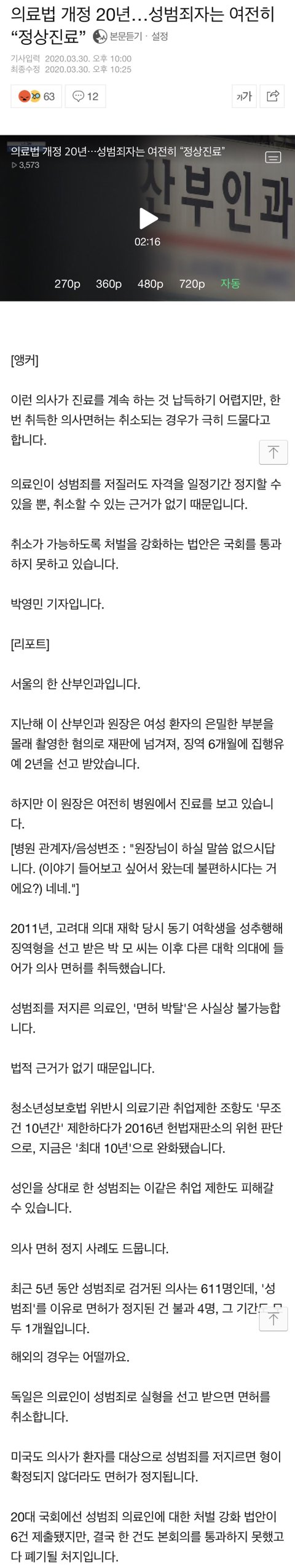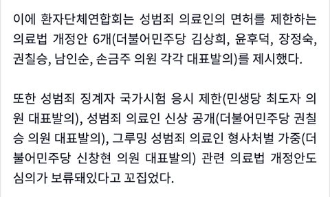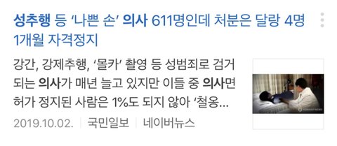 ㅇㅇ 사실임 의사는 성범죄를 저질러도 처벌할 수 있는 법 제도가 우리나라에는 없는 상태이기 때문