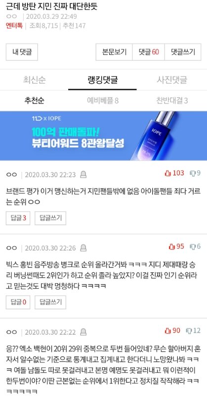 지민 까글은 거의 매번 베플 조작당함