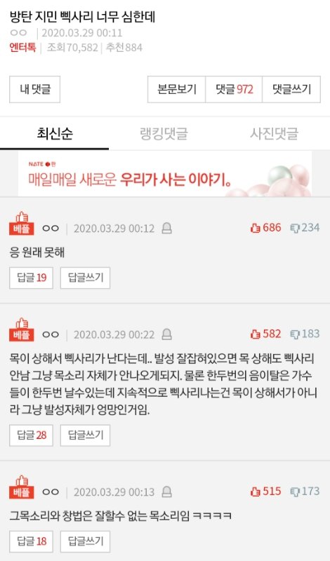네이트판에 아이디 최소 200개 있는 정국악개한테 공격당함