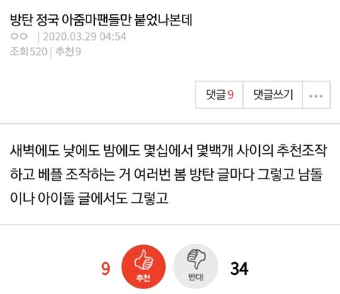 아미들이 팬톡에서 좌표찍어도 못 이기는 경우가 대부분임