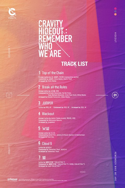 CRAVITY 데뷔 앨범 CRAVITY SEASON1. [HIDEOUT : REMEMBER WHO WE ARE]트랙리스트인데