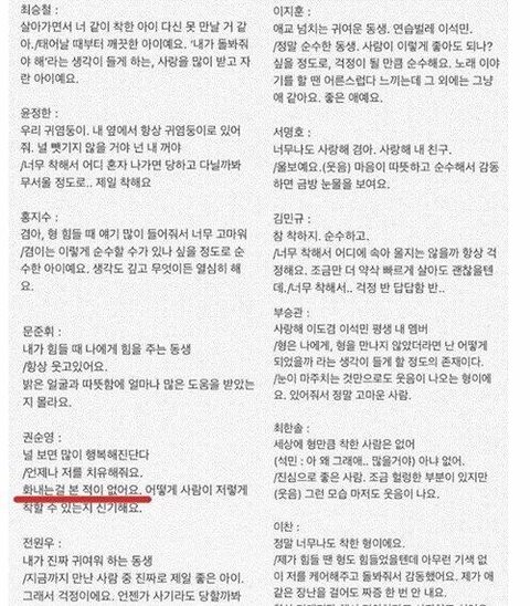 같은팀 멤버들이 저렇게까지 얘기할정도면 진짜 착한거임....24시간 동거동락하는 사이면 보통 단점이 먼저 생각나지 저렇게 착하다고 침마르게 칭찬하는게 드문데 ㄹㅇ