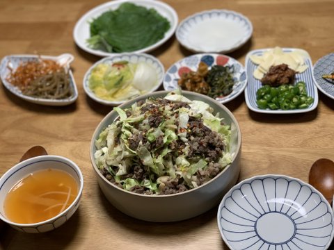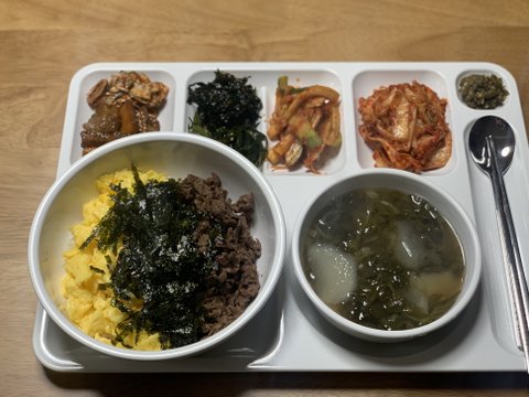 그래서 식판도 샀는데 꽉채워야한다는 괜한 압박감이... (불고기덮밥+쑥된장국)