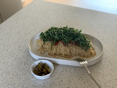 핫한 을지로보*은 멀기도하고 예약도 힘들어서 못갈것같아 집에서 해봤어요(들기름 낙지젓 카펠리니)