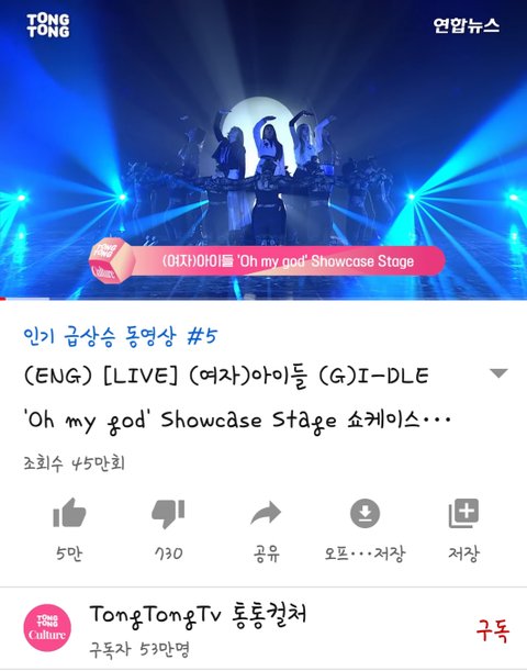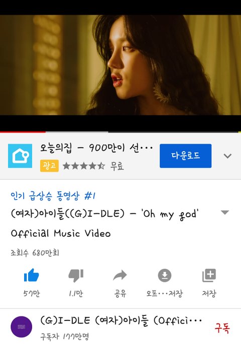 현재 유튜브 인기급상승영상 1위가 아이들 뮤비