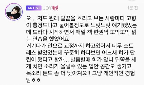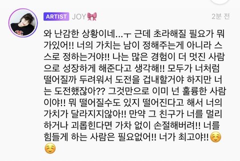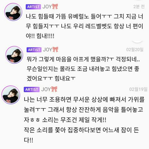 조이 팬들 고민들어주는 거 감동이다...