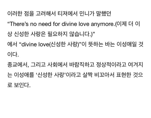 +) 아니 얘들아 왜케 싸워 이건 그냥 수 많은 해석중에 하나일 뿐이고 저분 해석이 깔끔하고 딱딱떨어져서 가져온 것 뿐이야.... 동성애 백분 토론 할 거면 새로 글 써서 거기서 해줄래....