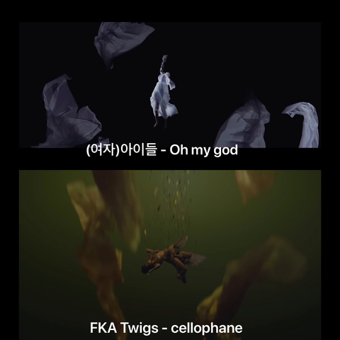 근데 이번 아이들 oh my god 뮤직비디오에 cellophane 뮤직비디오와 거의 동일한 이미지가 2종류 있는데,