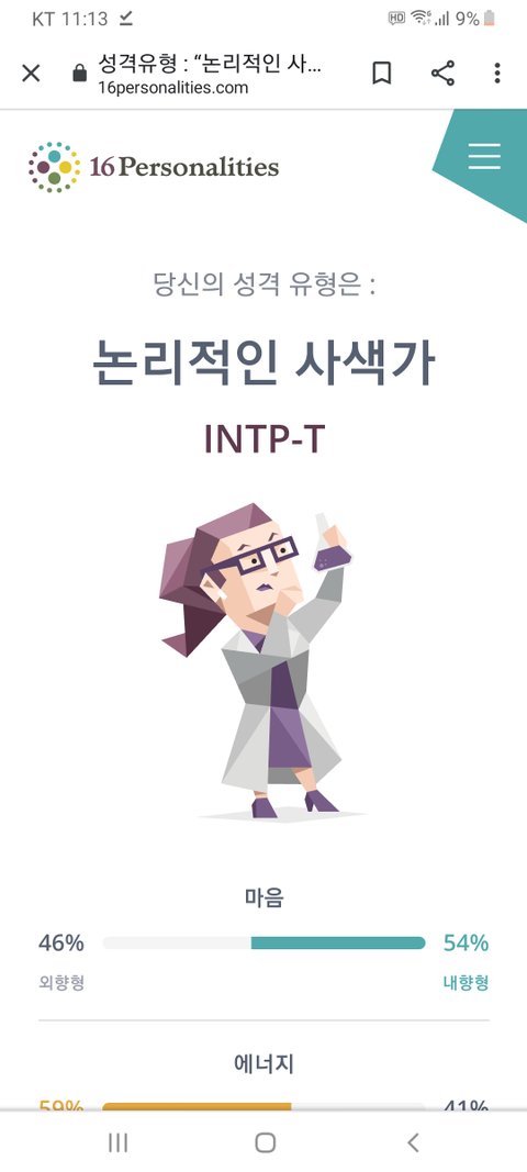 18살에는 enfp였는데, 다시 해보니 이렇게 나옴.