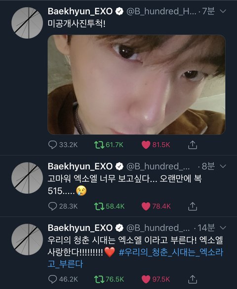 진짜 백현이는 천재만재임 복515라니ㅠㅠ 예전에도 백현이가 썼던 건데 기억하고 있었어ㅜㅜㅜ 화보 뜬 거 보고 뒤집어짐 2012년인 줄 알았자너