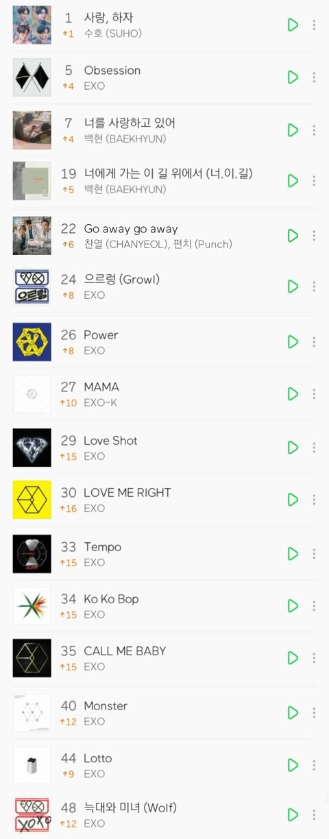 오늘 엑소 데뷔일인데 정규 리팩 타이틀 다 48위 안에 있음 ㅠㅠ 넘 뿌듯하다