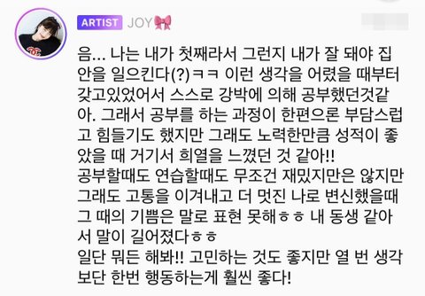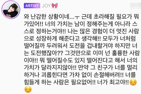 야물딱지게 팬들글에 댓글 달아주고 간 조이 사랑..