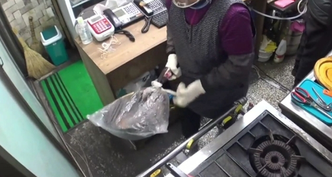 국자랑 웍이랑 함께 비닐안에 꽁꽁..