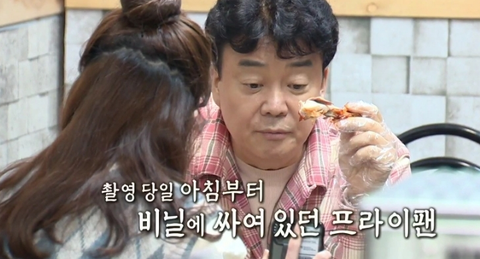 그래도 자리에 앉아 백종원이 챙겨주는 젓가락 받아 들음