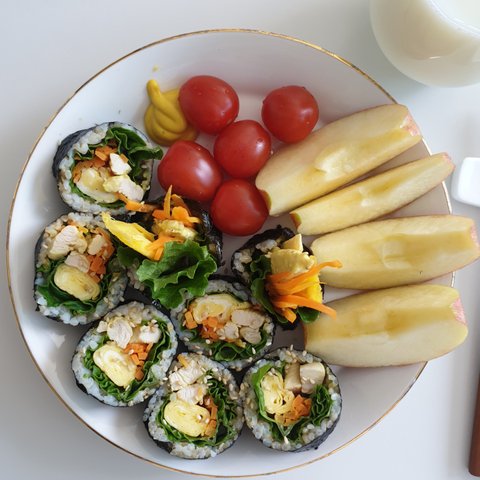 내려와서 닭가슴살 넣은 김밥을 만들어 먹었습니다.