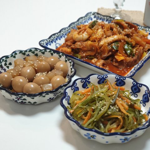 그리고 메츄리알 곤약조림이랑 미역줄기볶음도 해보았어용.