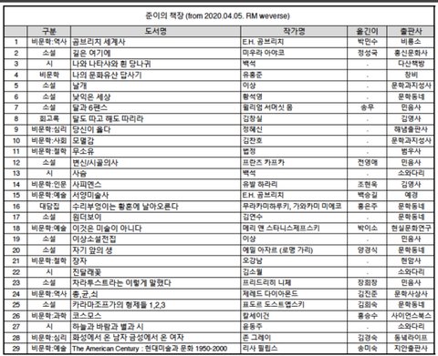 얼마전 우리버스에 일상을 유지하는 리더의 책장사진이 올라왔잖아 책목록이 짹에 정리된게 있어서 가져옴