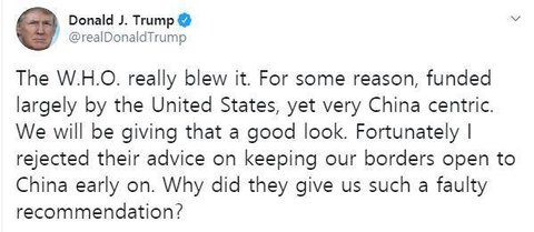 트럼프 “WHO가 코로나19 방역 전부 망쳐… 中 중심으로 일해”