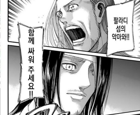 파라디섬을 제외한 전인류를 죽이는 대학살을 막기위해 파라디 쪽의 장, 코니, 아르민, 미카사, 리바이, 한지와 마레측의 애니, 라이너, 마가트 등이 연합해서 에렌을 설득시키러 가려고 함.