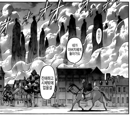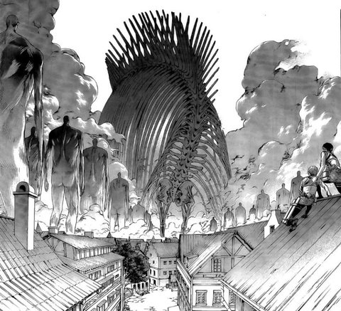 그리고 아주아주 이후에 왕가의 핏줄인 지크와 접촉한 에렌은 좌표에서 시조 유미르의 힘을 받아 모든 경질화를 풀고, 땅고르기를 실행시킴.